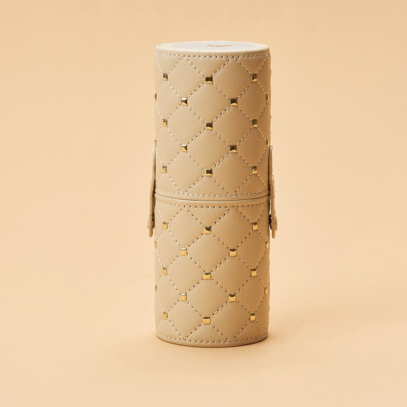 Leather Rivets Studded Portable Cosmetic Brush Case Travel Makeup Brush Holder