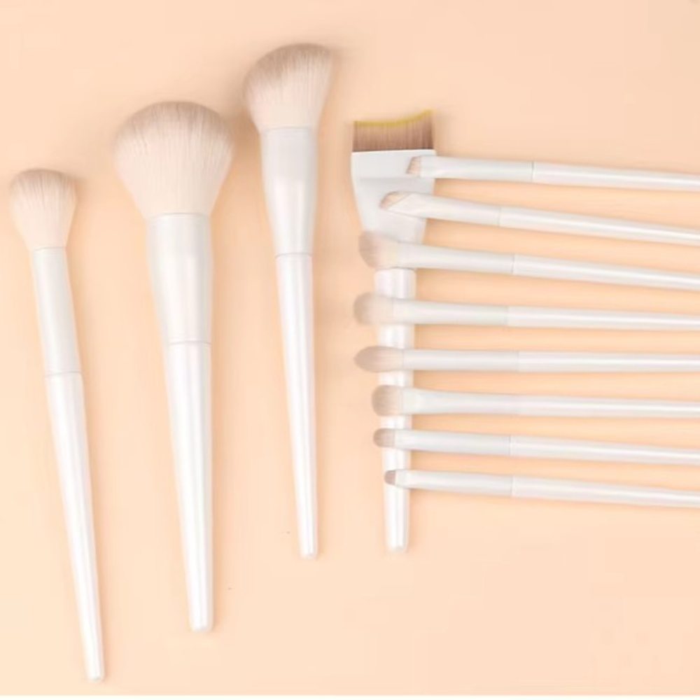 Custom Private Label Wooden Handle Synthetic Hair High Quality Powder Brush 12pcs Makeup Brushes White Makeup Brush Set
