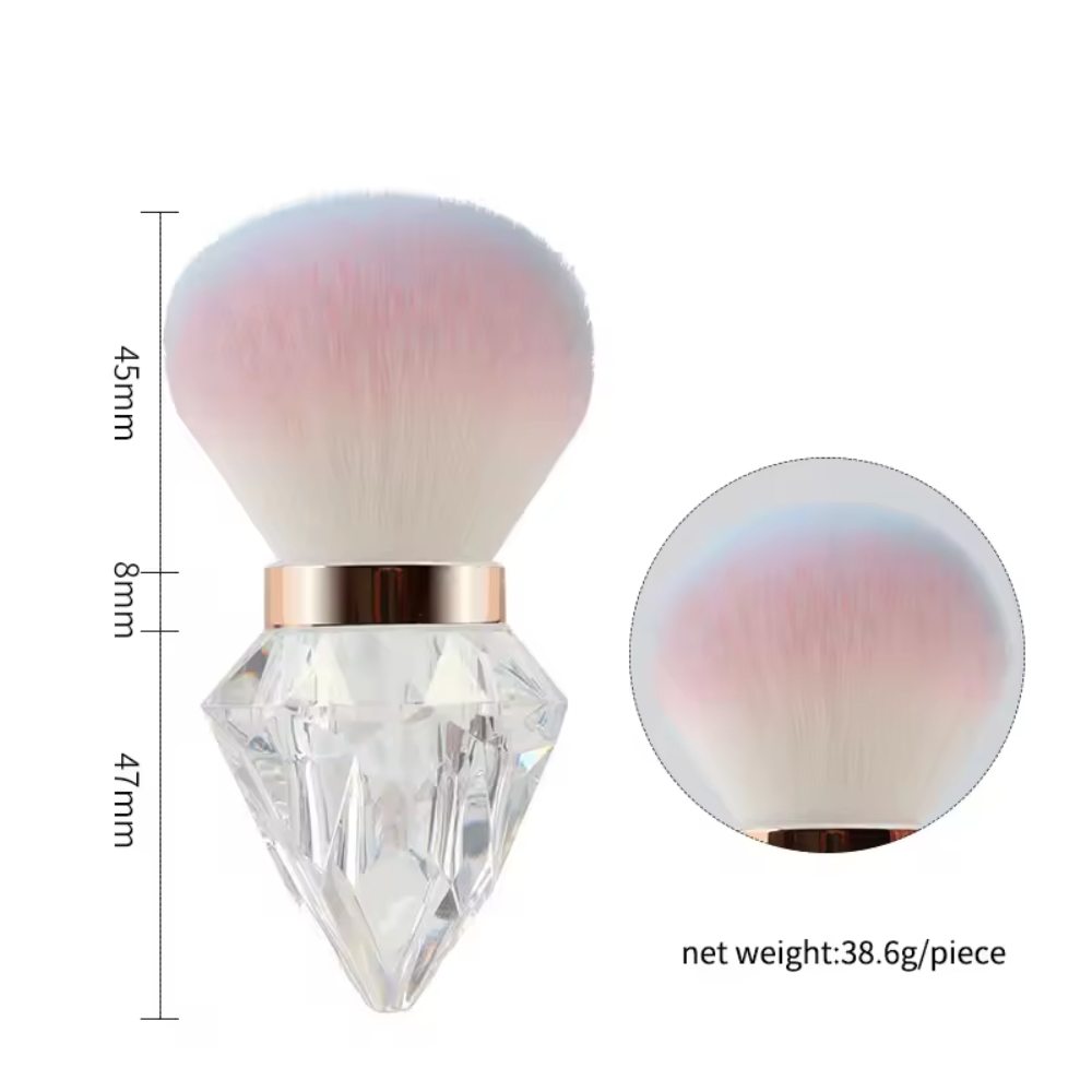 Add a touch of luxury to your brand with this unique hourglass-shaped brush. Its soft, high-quality bristles are perfect for applying powder or dusting off nail art. The chic, glittery handle and elegant design make it a standout product. This brush is fully customizable with your logo and available in a variety of colors, making it a perfect fit for any brand.