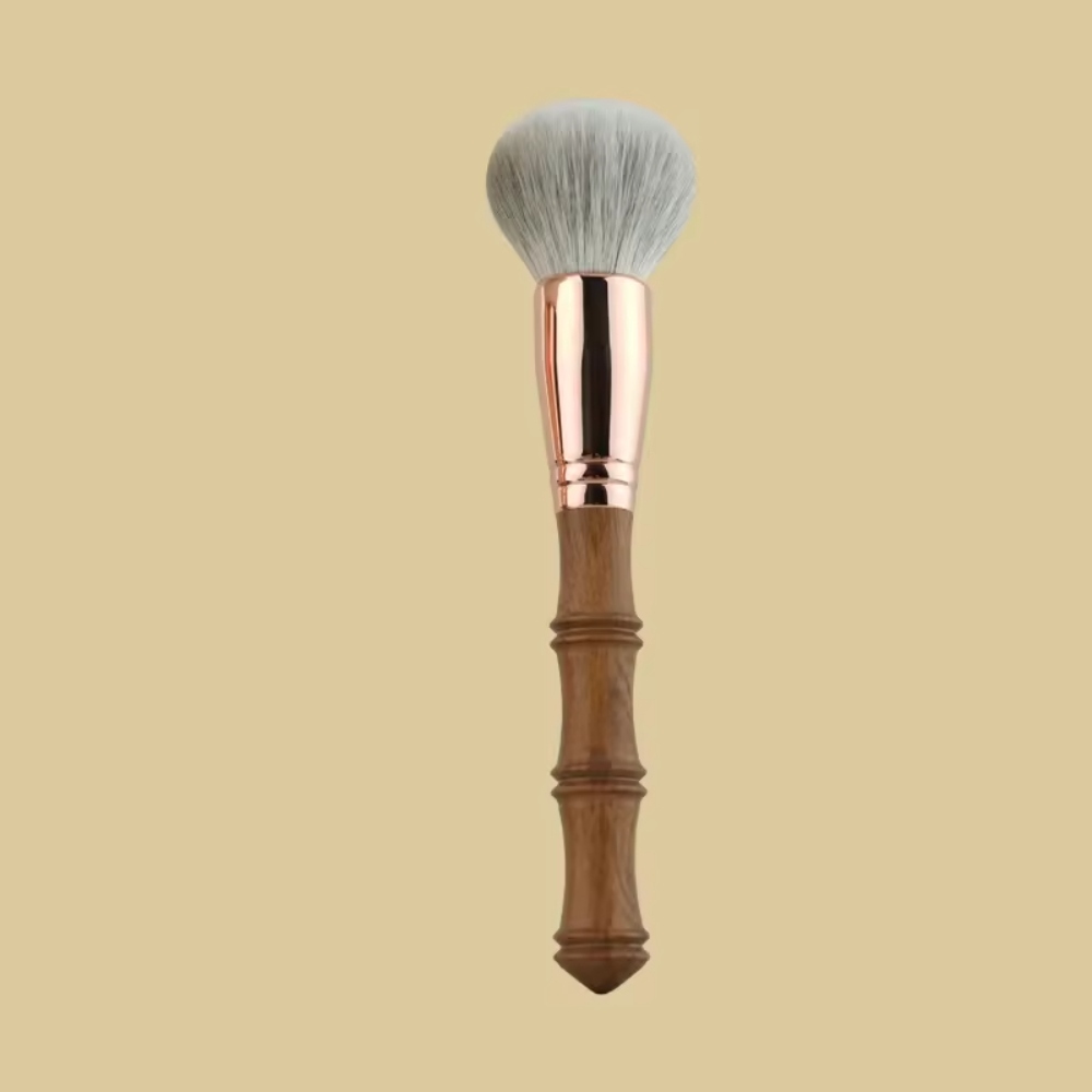 Enhance your beauty routine with our private label goat hair loose powder brush. Featuring a unique bamboo handle, this large, soft facial brush is fully customizable to fit your brand. Perfect for flawless powder dispensing.