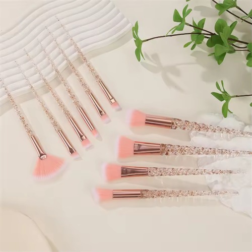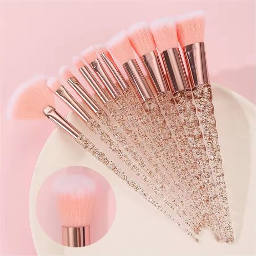 Wholesale 10-piece Crystal Diamond makeup brush set with soft fiber for foundation, blush, and eyeshadow. Factory customizable in multi-color options.