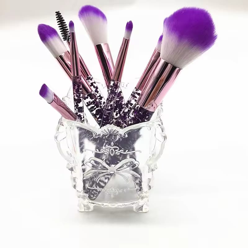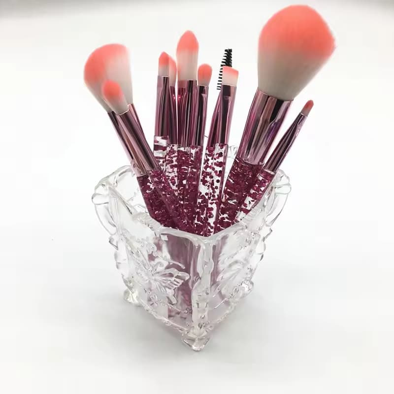 Makeup Brush Set Vegan with a Beautiful Cosmetic Bag 10 Pcs Bling Makeup Brushes Manufacturer Oem Synthetic Hair Foundation