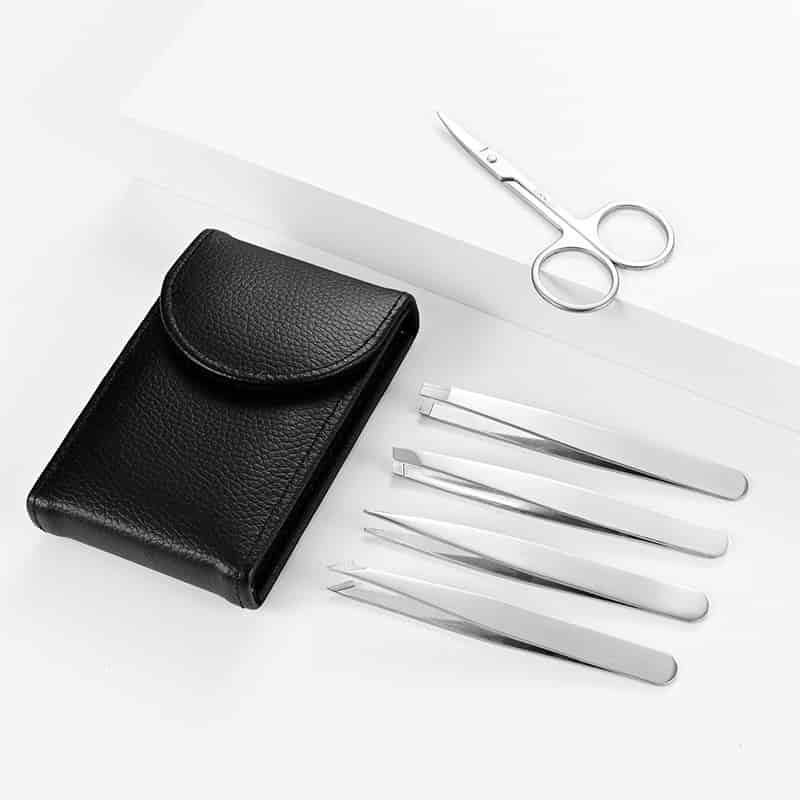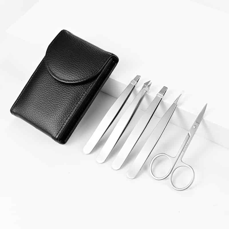 5 Pcs Leather Eyebrow Trimmer Tweezers Set with Scissors