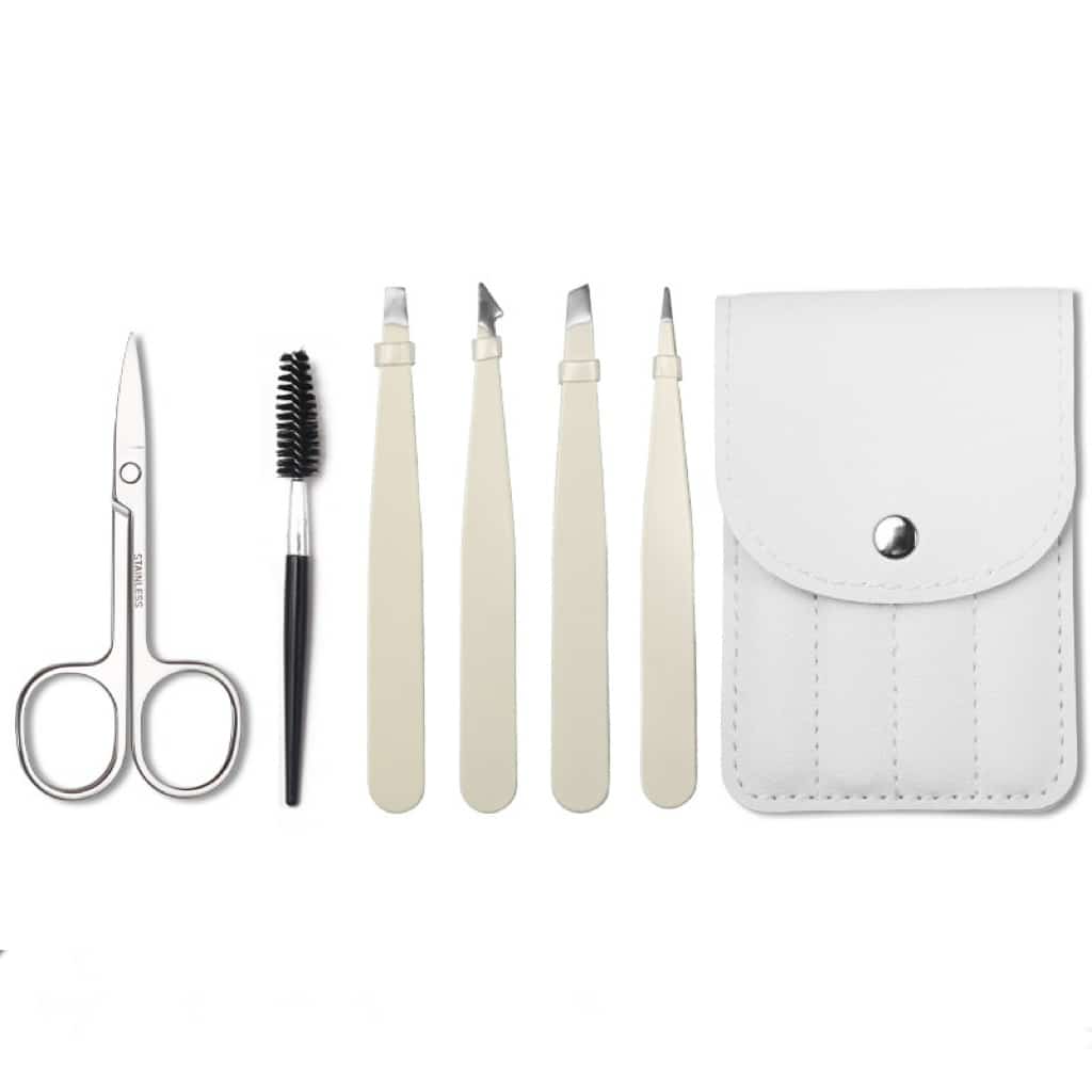 6Piece Girl Eyebrow Tweezer Makeup Brush Kit Curved Eyebrow Clip with Leather Pouch