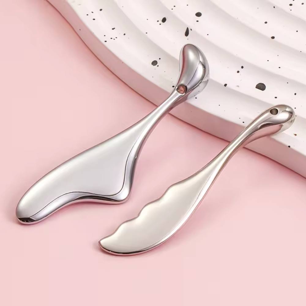 Introducing our versatile zinc alloy Gua Sha tools, perfect for both facial lifting and body massage. Their ergonomic design makes them easy to use for a soothing, effective massage. Available in different styles and finishes, these tools can be customized with your brand's logo. Offer your customers a luxurious, personalized addition to their skincare routine.